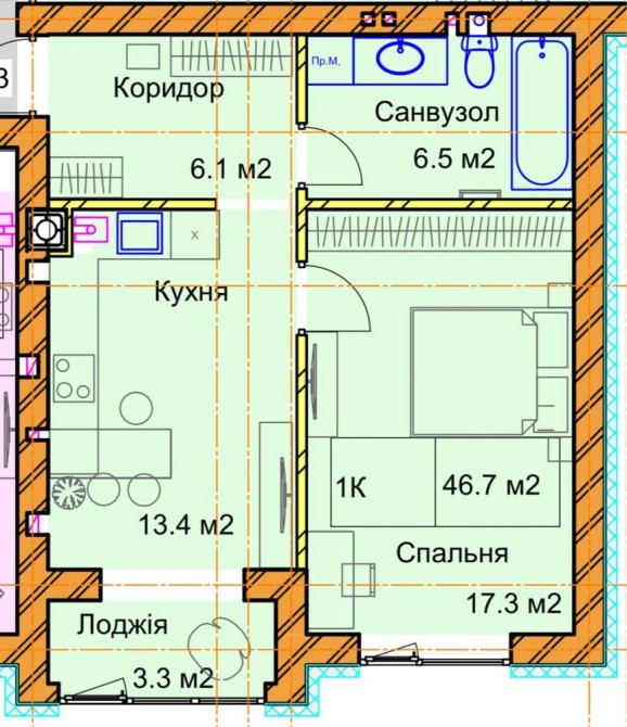• Загальна площа 46.7 м2