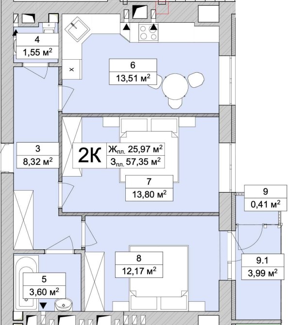 • Загальна площа 57 м2