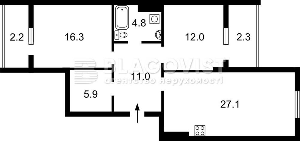 • Площа кухні 27.1 м2