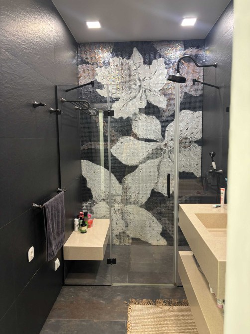 пол в коридоре, в ванной комнате, на кухне, полка в душевой - с подогревом