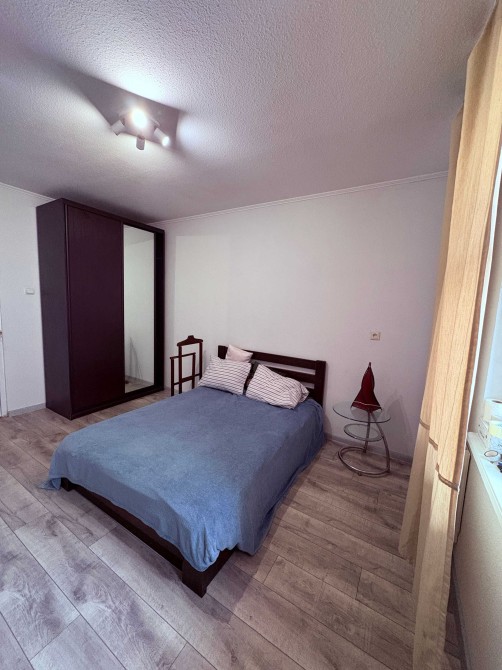 Меблі : Двоспальне ліжко( місце для зберігання),диван, шафи , робочий стіл. Кондиціонер.