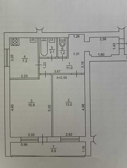 Квартира загальною площею (з лоджиєю) 57 кв. житлова площа 28 кв., кухня 7,2 кв.
