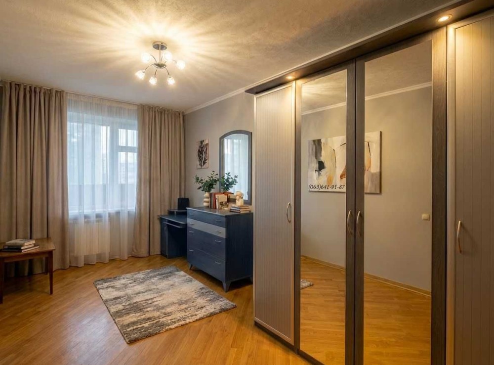 В квартирі був зроблений капітальний ремонт 15 років назад, замінена, труби, радіатори, дерев’яні міжкімнатні двері, нові дерев’яні вікна, сучасний паркет. Велика лоджія на дві кімнати. Три кондиціонери, електричний водонагрівач, вбудовані кухонні меблі.