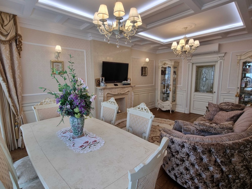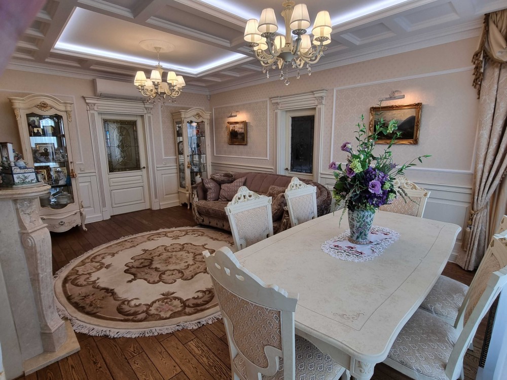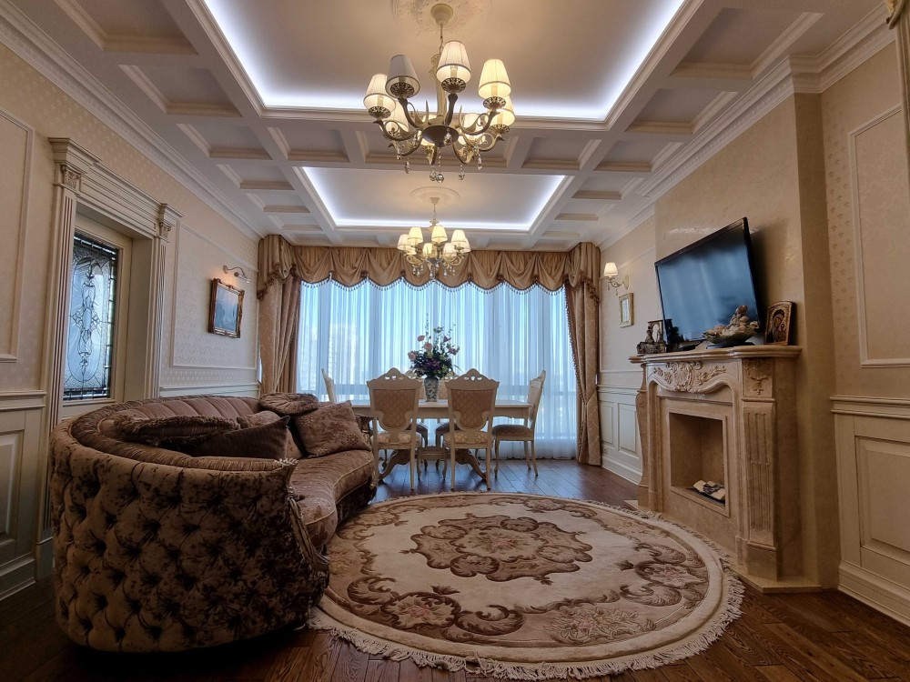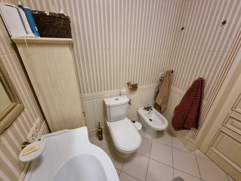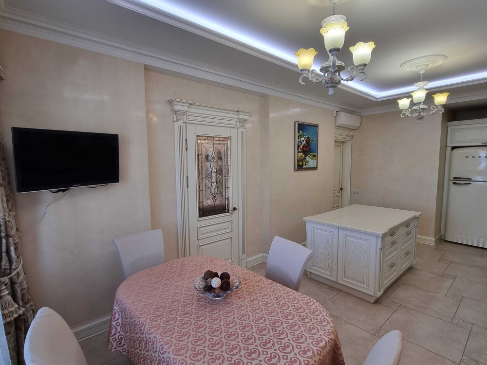 Оренда 2-х кімнатної квартири в елітному житловому комплексі, ремонт в класичному стилі, вітальня, спальня, два санвузли, гардеробна, господарське приміщення, якісні меблі, побутова техніка, кондиціонери, підігрів підлоги. В житловому комплексі цілодобова охорона, відеоспостереження, закрита територія, дитячі майданчики, набережна, паркінг наземний та підземний.