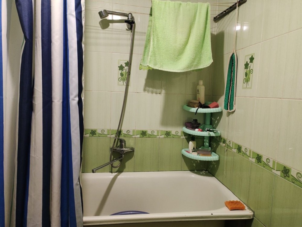 Квартира в жилом состоянии без ремонта, есть все удобства, ванна, туалет, погреб, двухконтурный котел для отопления и горячей воды, холодильник, газовая плита, стиральная машина- автомат, телевизор, мебель.
