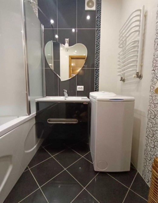 Квартира повністю укомплектована: залишаються меблі та вся побутова техніка (кондиціонер, пральна машинка, холодильник тощо).