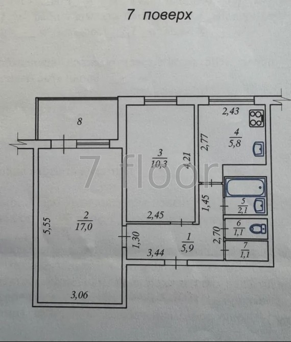 • Площа кухні 5.8 м2