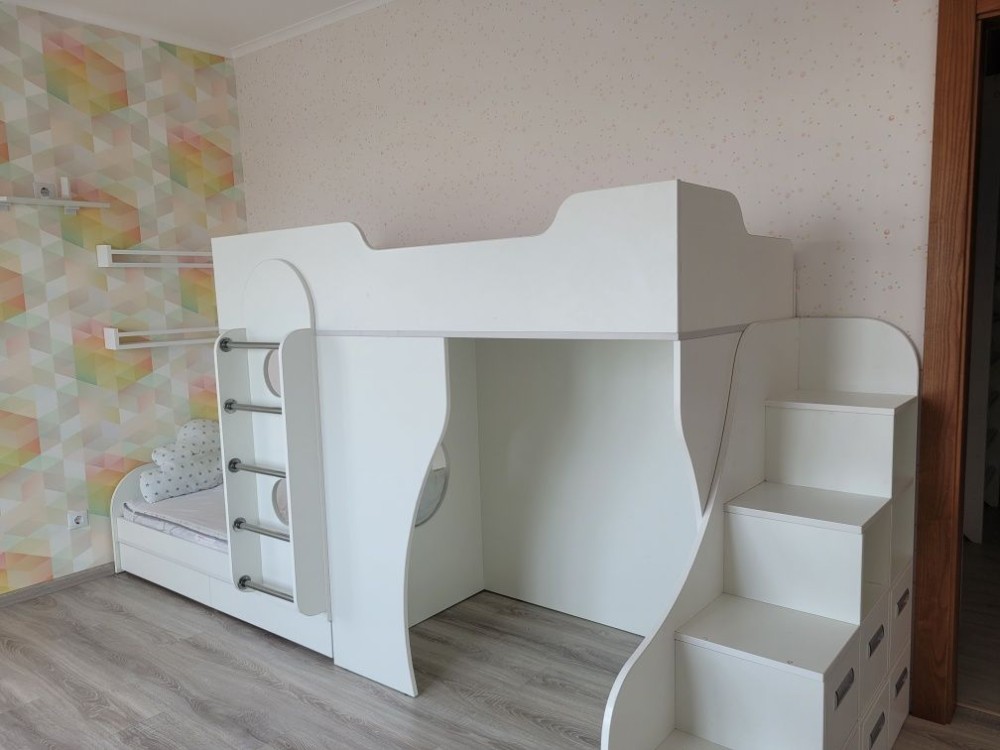 Квартира з двома окремими кімнатами та велика кухня-вітальня. В спальні двоспальне ліжко, шафа, робочий стіл. В Дитячій двоповерхове ліжко та шафа. Окремий гардероб, окрема пральня, суміщений санвузол. Великий коридор з монолітними стінами. Вся необхідна техніка. Електрична тепла підлога. Лічильник на опалення.
