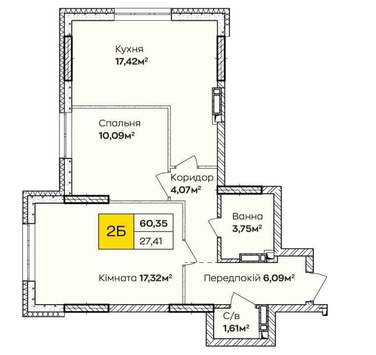 - Площа: 60,35 м²