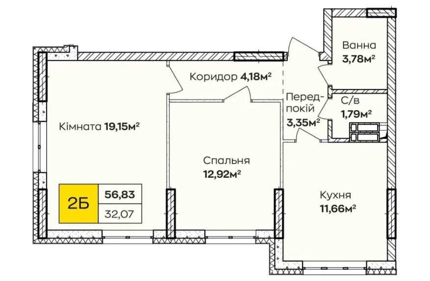 Площа — 56,83 м²
