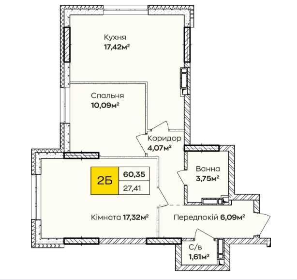 • Загальна площа 60.35 м2