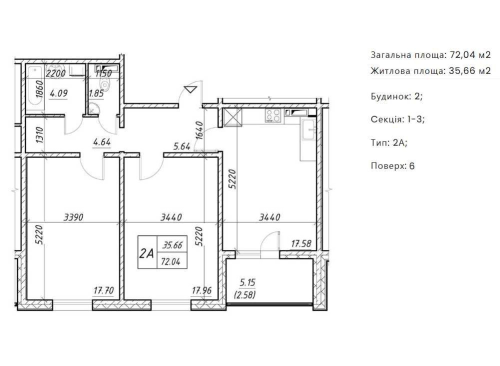 • Площа: 72,05 м²