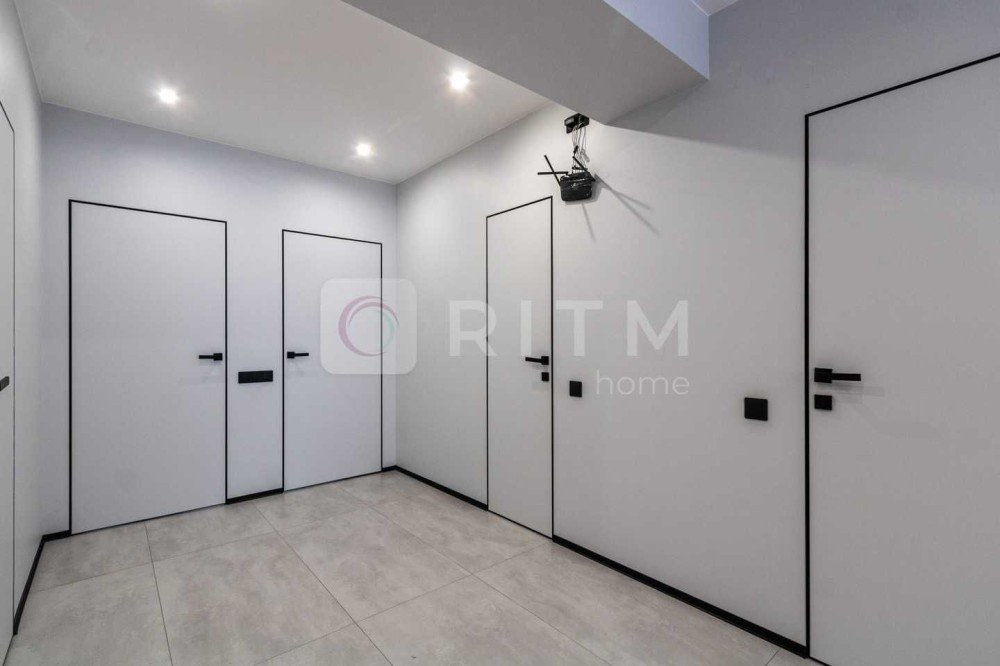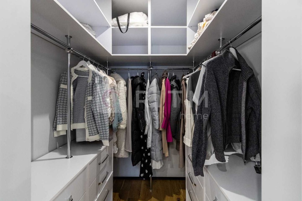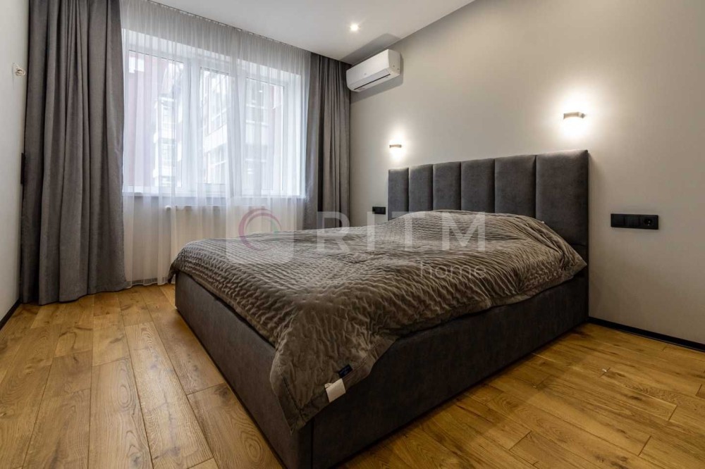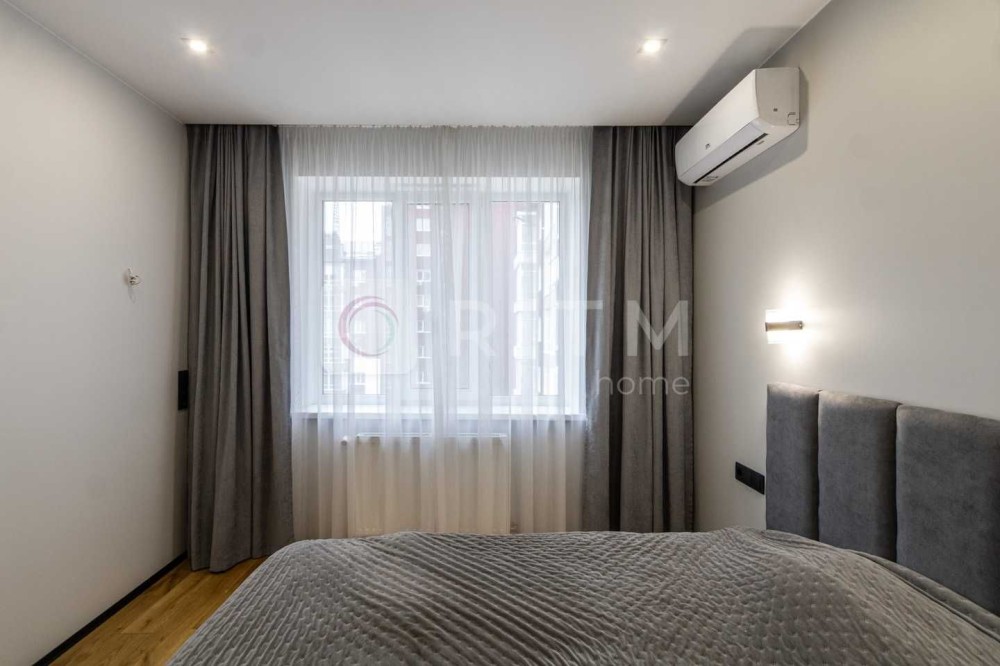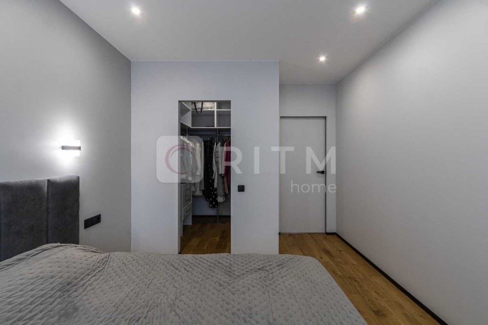 Спальня має кондиціонер CH, розетки для телевізора та косметичного столика. Простора гардеробна обладнана системою зберігання, прихованим монтажем штор, вимикачами біля ліжка та додатковим підсвічуванням.