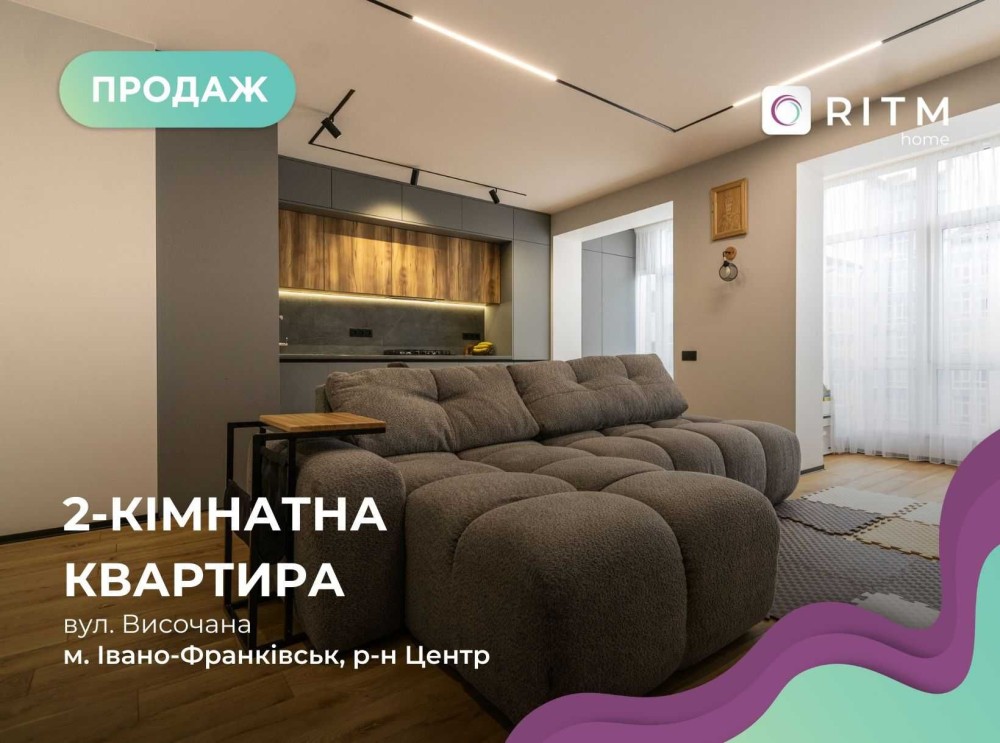 Продається стильна та простора 2-кімнатна квартира з великою кухнею студією в одному з найзручніших житлових комплексів Івано-Франківська — ЖК «Містечко Центральне», вул. Височана, 18.
