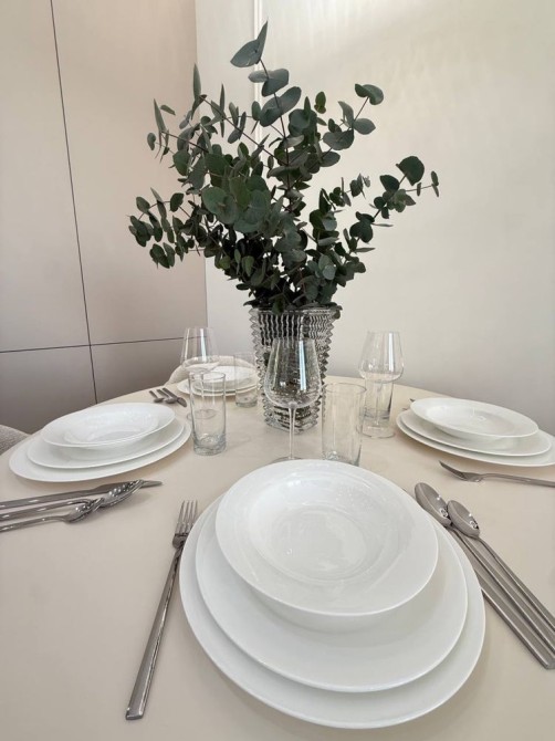 В квартире использованы только качественные материалы и техника. Кухня оборудована всей необходимой встроенной техникой Bosch, установлены тонкая столешница hpl. Все стены выкрашены, что придает интерьеру легкость и современный стиль.