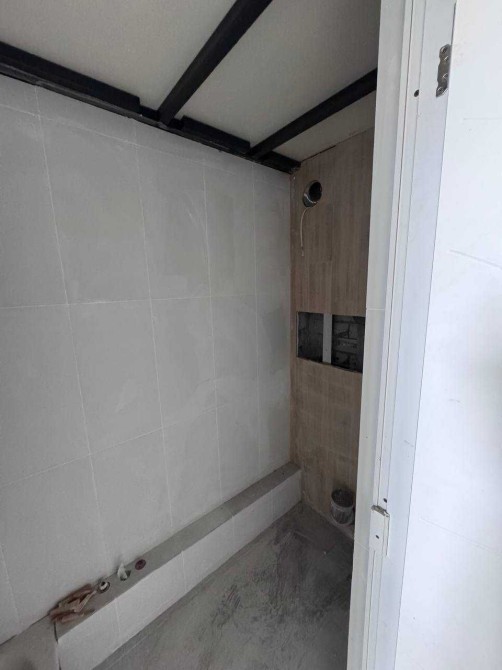 Квартира с черновым ремонтом, установлен САМА КОНСТРУКЦИЯ С КАРКАСОМ И НАСТИЛОМ ВТОРОГО ЯРУСА , а это означает что дорогостоящие материалы и монтажные работы уже входят в стоимость и выполнены, плитка на полу и стены в Санузле, душевой поддон, оштукатурены стены, стяжка пола, заложена магистраль для кондиционера, все коммуникации в квартиру заведены (вода, канализация, электричество, установлен радиатор отопления) и что самое главное выполнены их РАЗВОДКА по квартире и все ВЫВОДЫ. Остаётся уже только чистовая отделка. Положена плитка на полу по всей квартире.