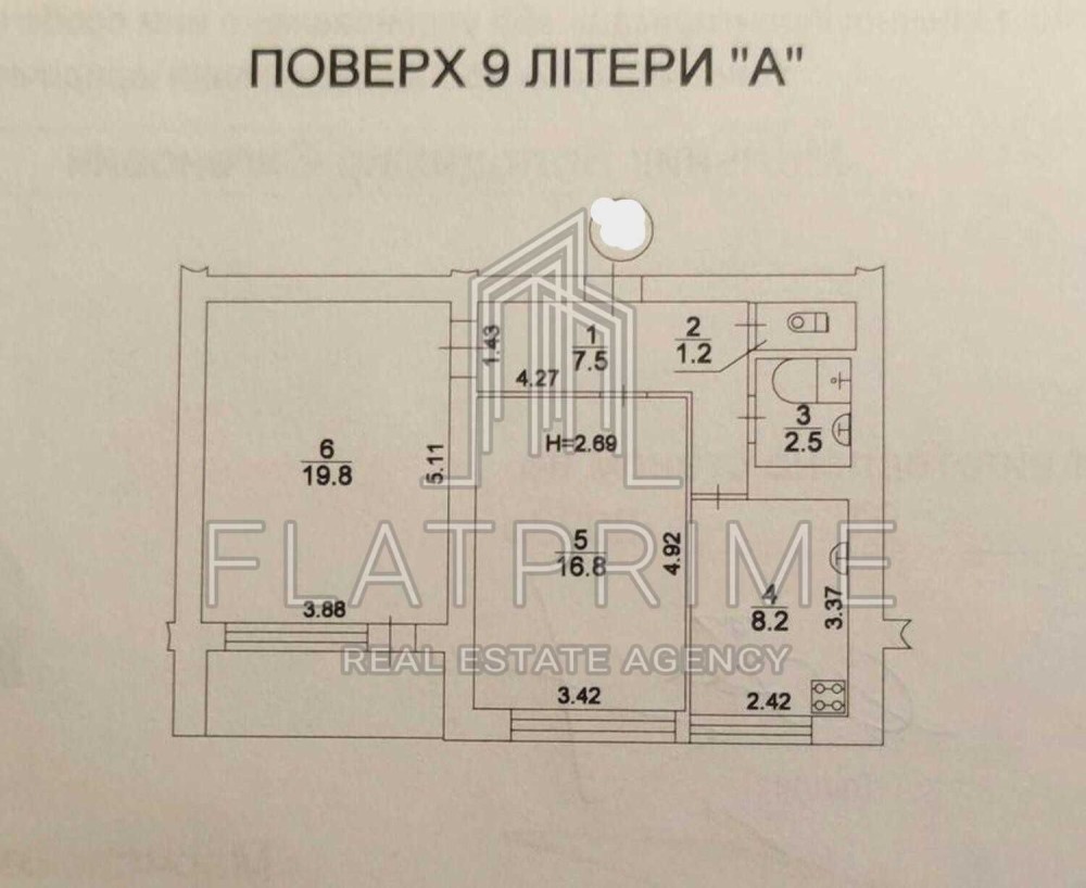 • Площа кухні 8.2 м2