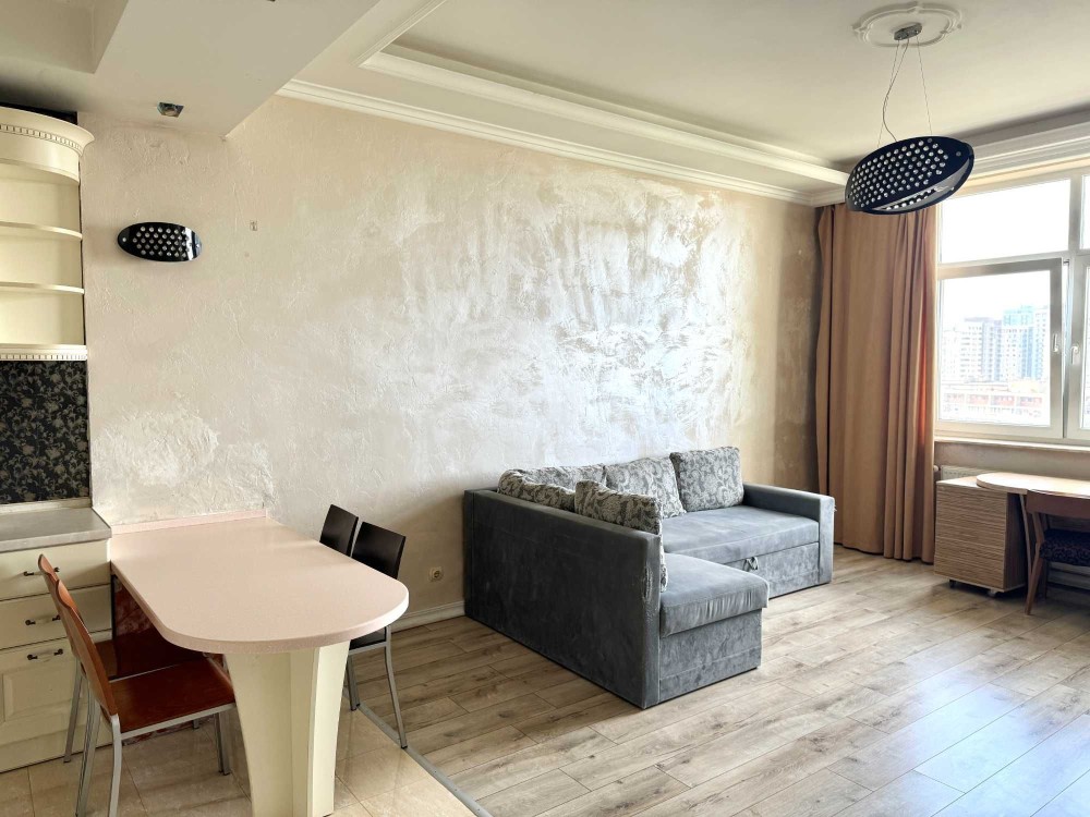 - кухня-столова об'єднана з зоною вітальні, що дуже зручно для проведення часу з сім'єю та близькими. У зоні вітальні розташовано великий диван, що розкладається, телевізор, встановлено кондиціонер, а також є робочий стіл на 2 місця.