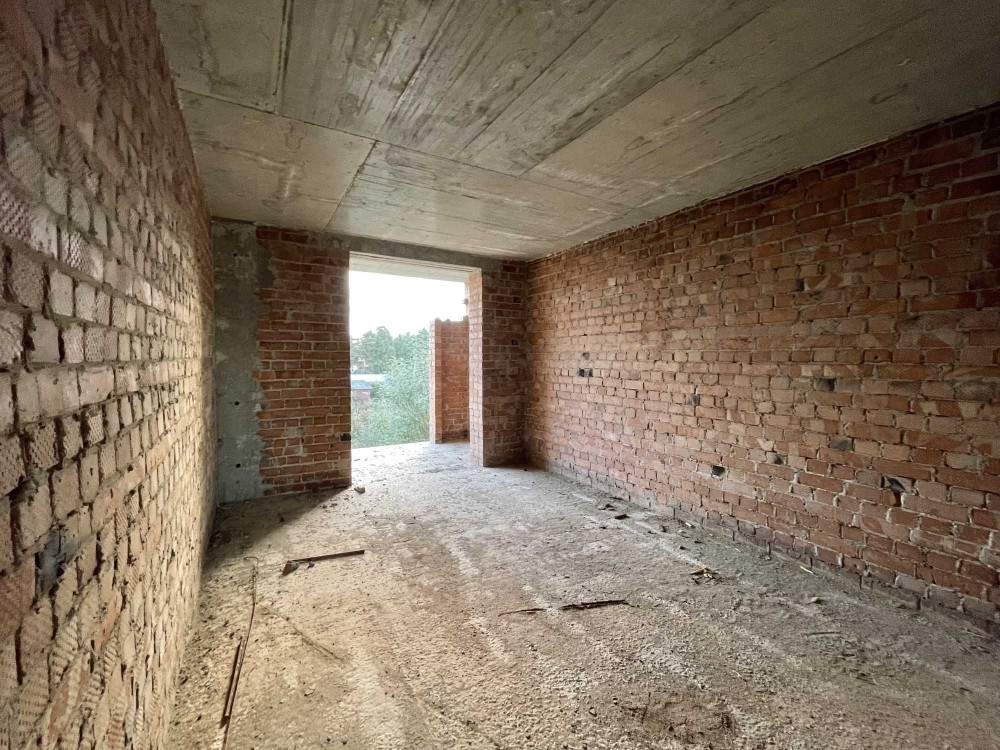 Збудований із цегли та керамічного блоку.