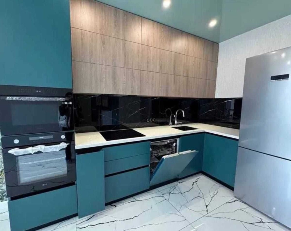 Кухня укомплектована якісною побутовою технікою BOSCH: варильна поверхня, духова шафа, мікрохвильова піч, посудомийна машина. Стільниця виконана з граніту.
