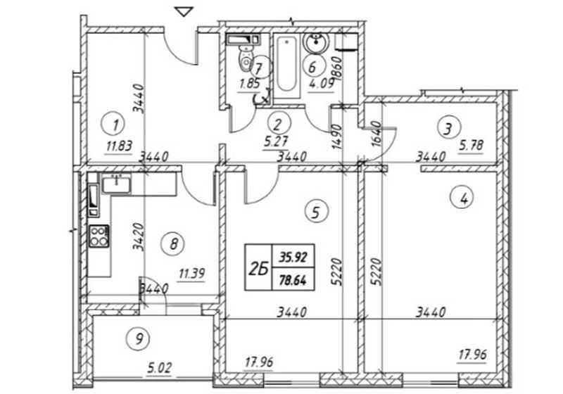 • Загальна площа 78 м2
