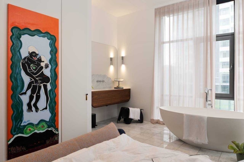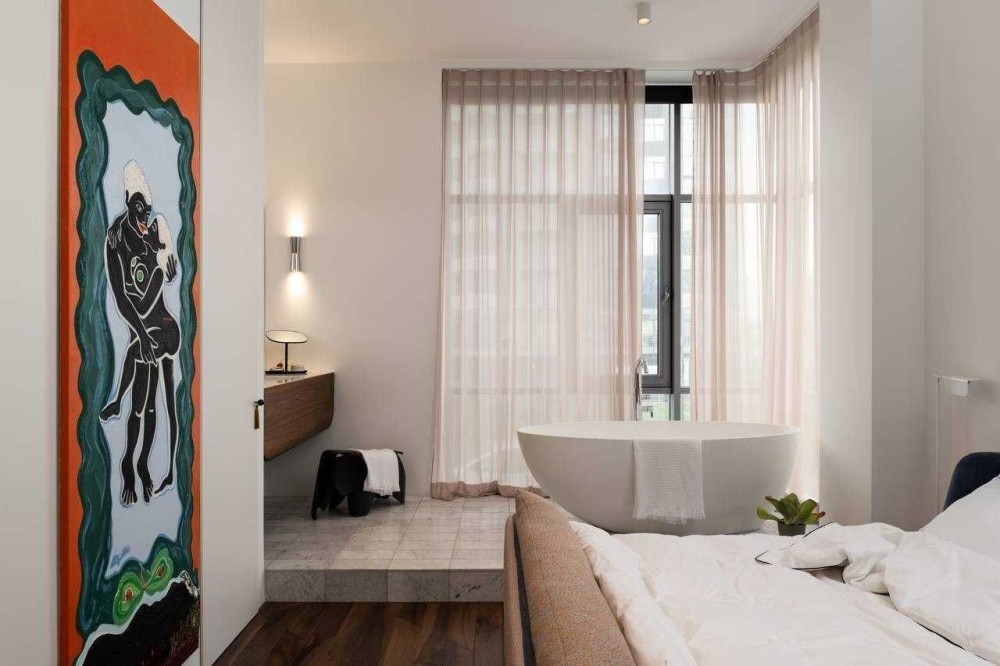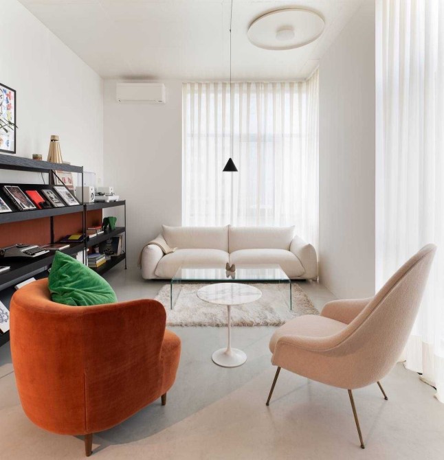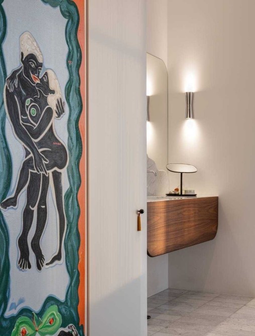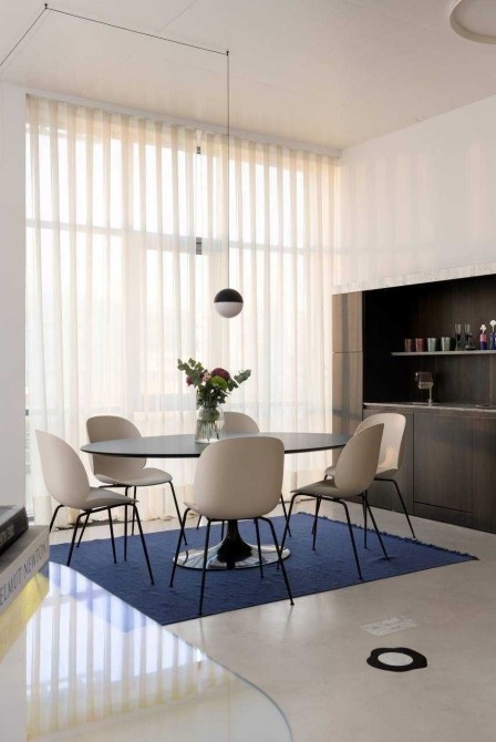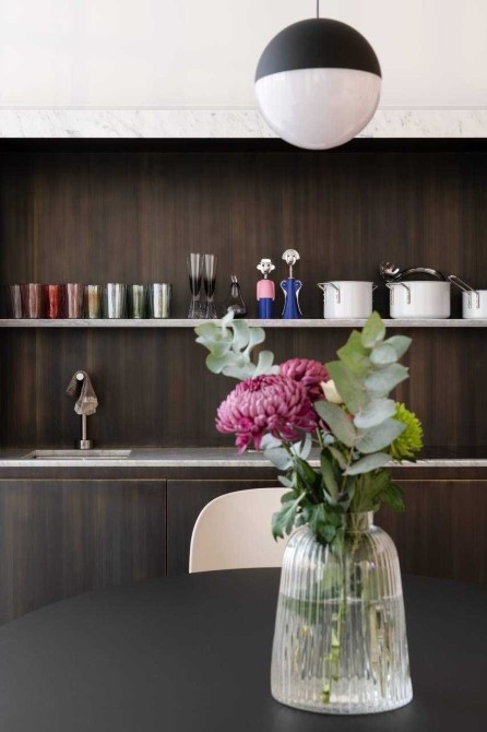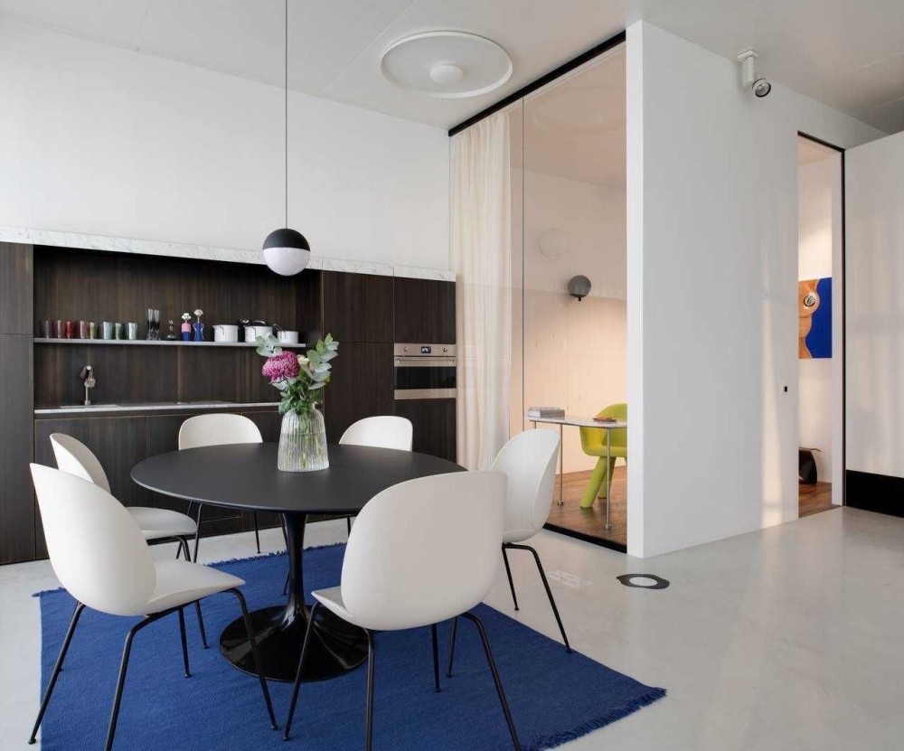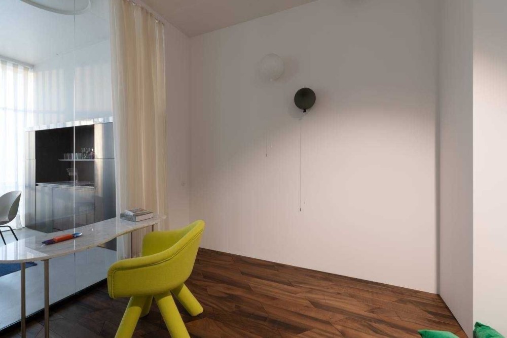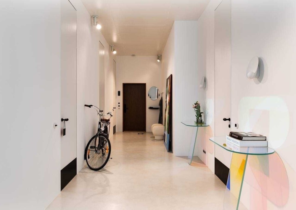 Сантехніка - Axor, Fantini, Kos Zucchetti, Cielo. Побутова техніка Smeg, Whirlpool. Текстиль Kvadrat textile by Raf Simons, кашемірова вуаль Sahco. Освітлення Flos, Vibia. Меблі фабрик Gubi, Knoll, Arflex, Glass Italia, Vitra, Menu, Norr11 та інші. Кухня-вітальня, гардеробна система Volpato - виготовлені за індивідуальним замовленням, фасади з латуні, шпону горіху.