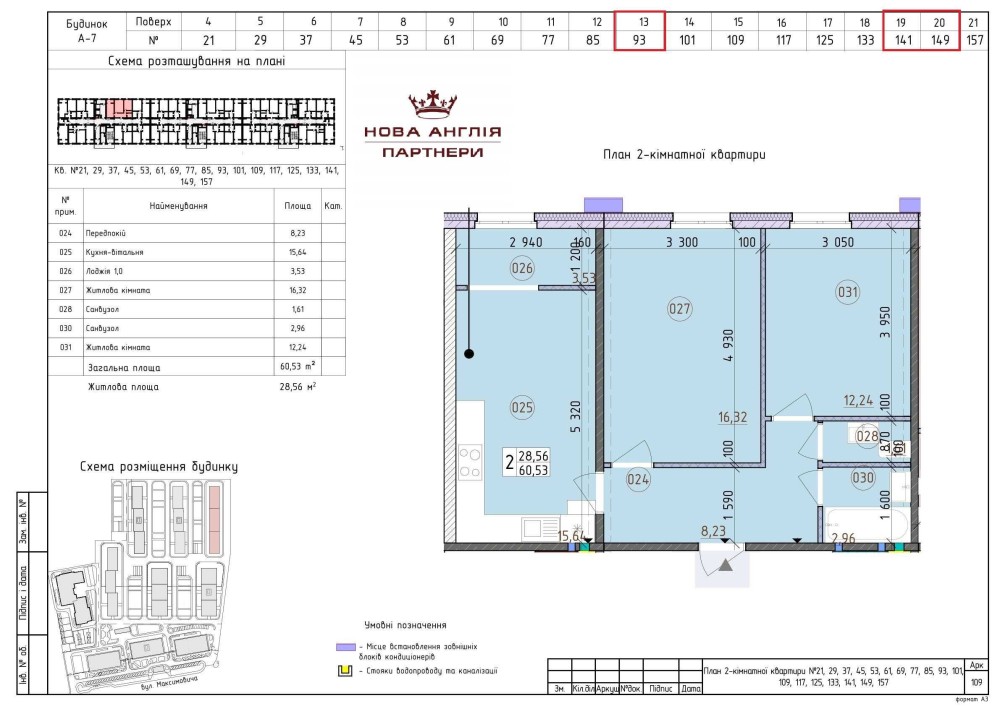 - Квартира № 149 на 20му поверсі. Загальна площа - 60,30 м². Вартість - 3 618 000 грн.