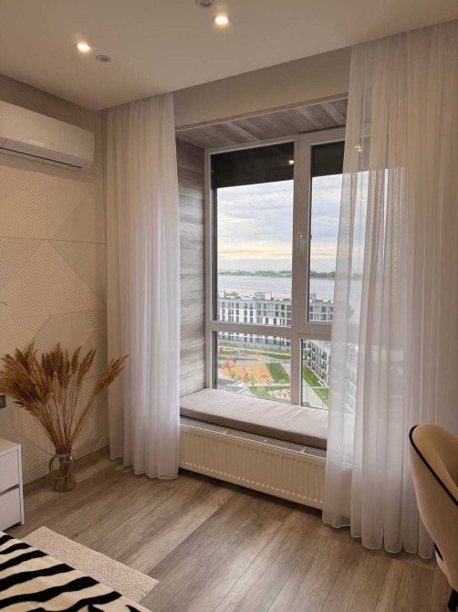 Звісно "перлиною" цієї квартири є панорамний вид на живу картину "Дніпро і острови", яка постійно змінюється - споглядаючи яку можна пити вино або ранкову каву, писати вірші або просто релаксувати!