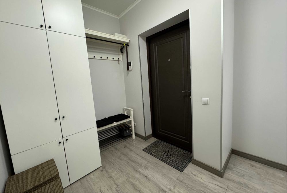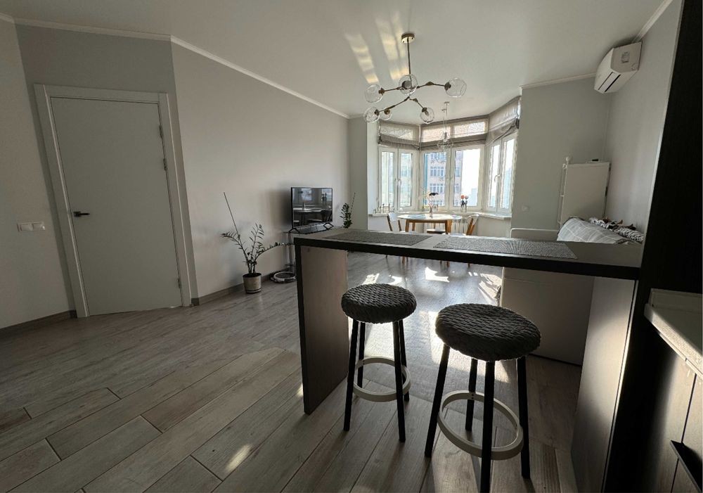 Квартира має кухню-студію з двоспальним диваном та окрему спальню з двоспальним ліжком king-size, суміжний санвузол, гардероб та лоджію. Квартира повністю укомплектована меблями, технікою (бойлер, пральна машина, кондиціонер, духова шафа, посудомийна машина, холодильник, мікрохвильова піч, варильна поверхня, електрочайник, миючий пилосос та робот-пилосос, праска), великою кількістю різноманітного посуду, постільною білизною тощо.