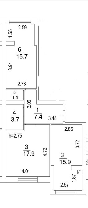 64кв.м. 2хкомнатная квартира с ремонтом