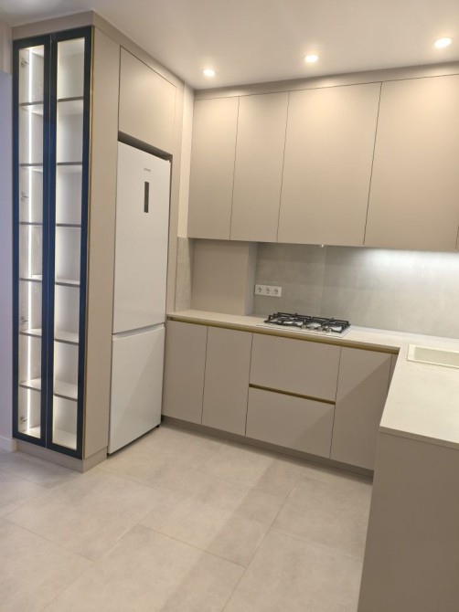 В квартирі взагалі не використовувавлись бюджетні матеріали, дорогі меблі,фасад кухні виконаний з мдф AGT Supramat, фурнітура Blume, облаштована якісною технікою від світових виробників(нова в плівках):