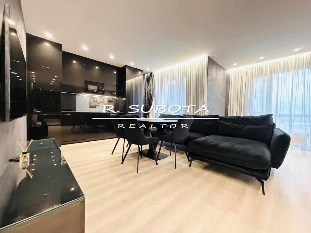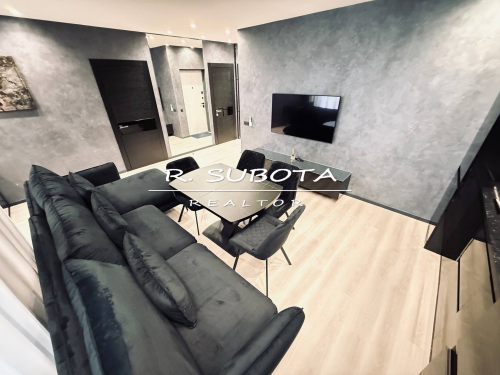 Квартира общей площадью 55м2 спланирована: кухня-студия, спальня, просторная ванна и балкон (вид на р. Днепр).