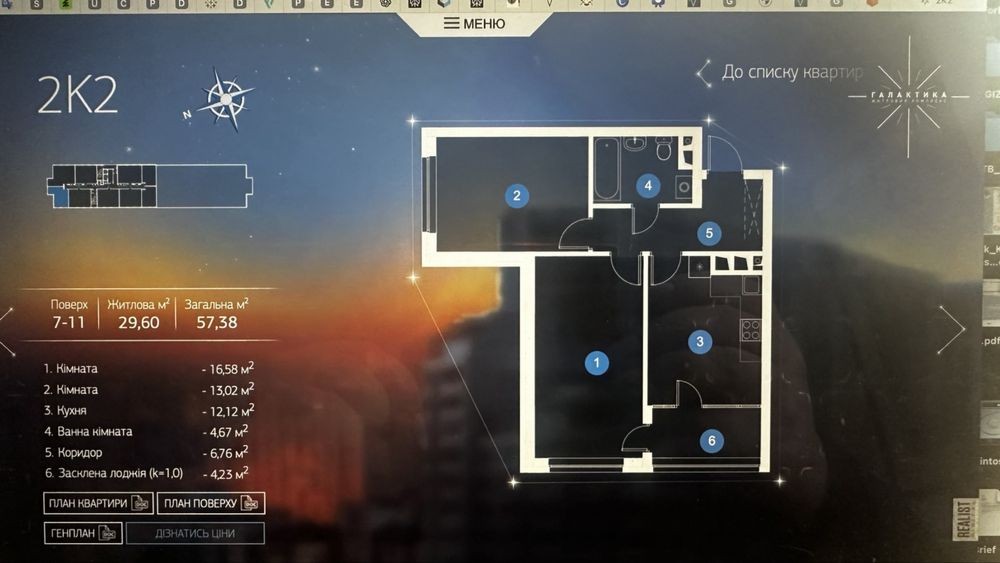 • Загальна площа 58 м2