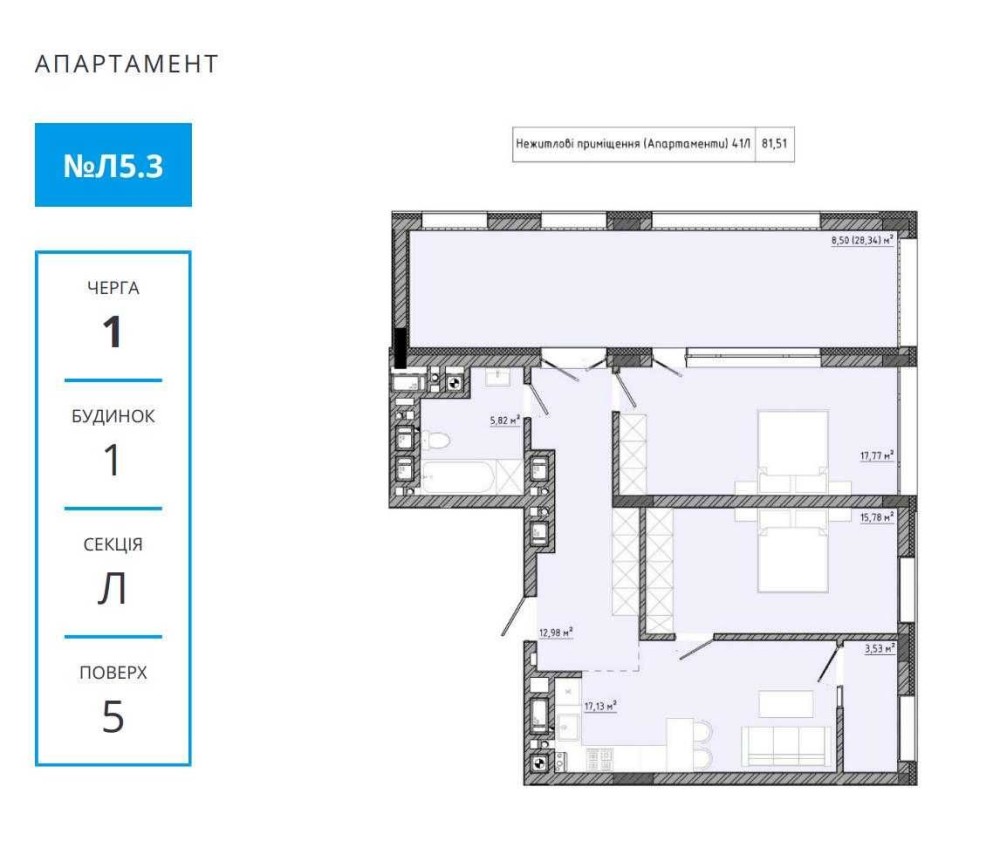 Площа: 81.5 м2.
