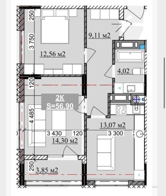 • Загальна площа 57 м2
