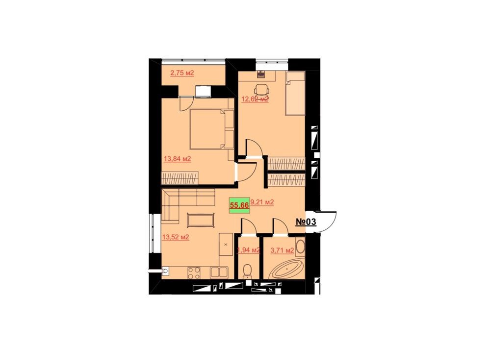 • Загальна площа 55 м2