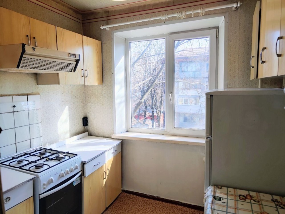Вторинний ринок, хрущовка, 4-й поверх, будинок 5-ти поверховий, площа кухні – 5,2 м кв, тип стін – панельний, клас житла – економ, планування – кімнати роздільні, санвузол – суміжний, опалення – централізоване, ремонт – житловий стан, меблювання – так.