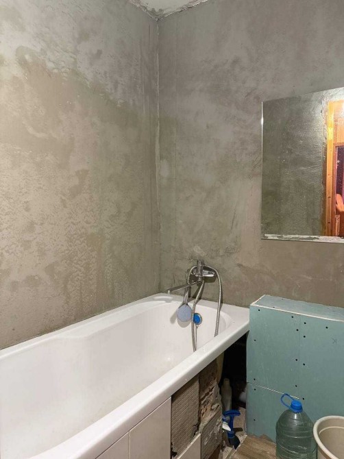 На теперішній час в санвузлі замінені труби та порівняні і підготовлені стіни під укладку кахлю.