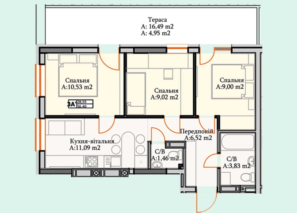 • Загальна площа 56 м2