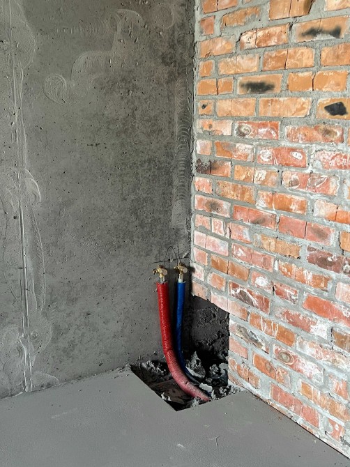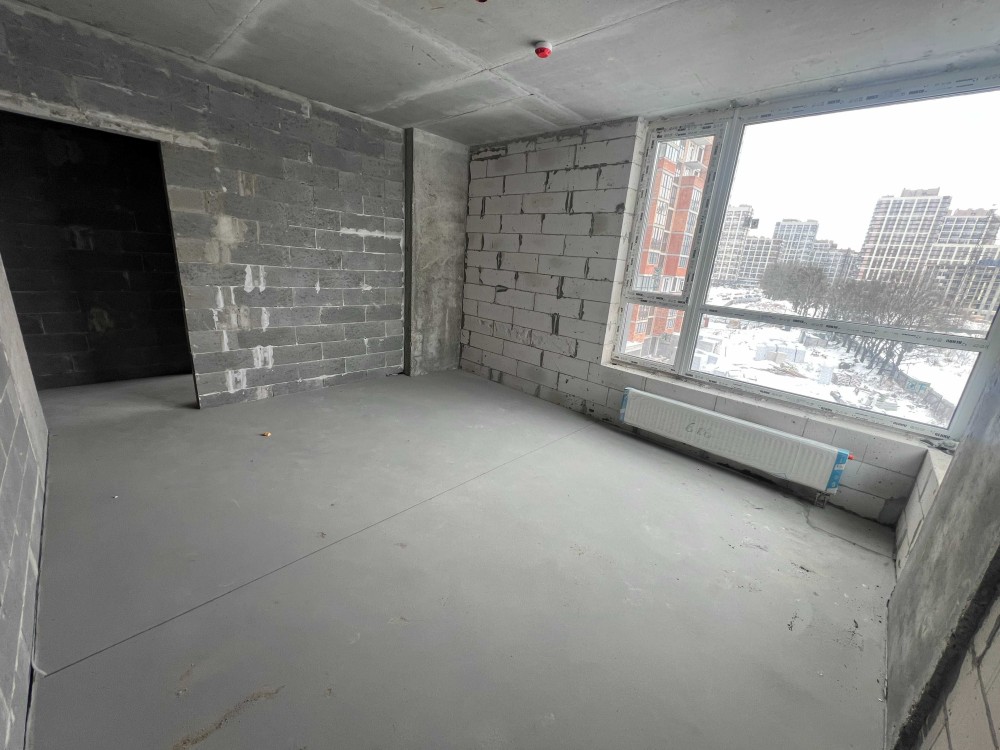 Наповнення - стяжка, розводка опалення, встановлені радіатори.