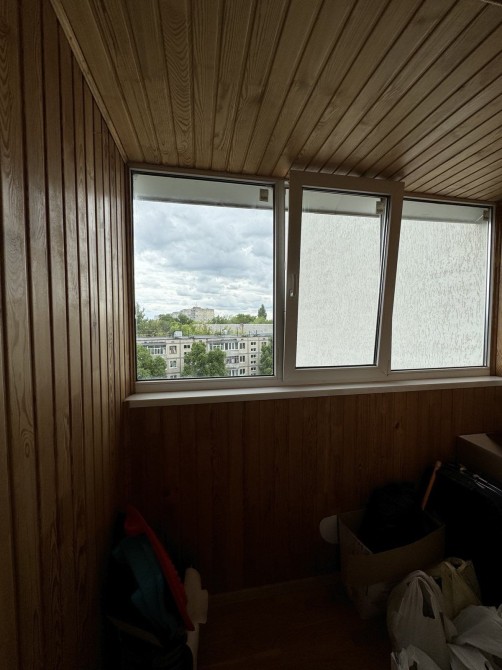 Балкон і лоджія застеклени і обшити вагонкою.
