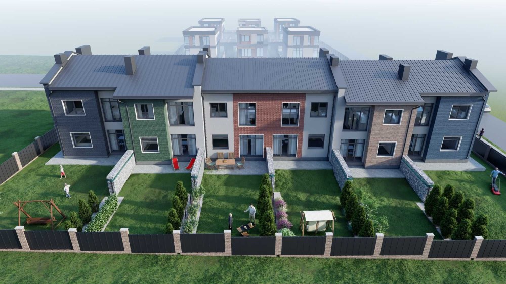 Площа від 105 м², власне переднє та заднє подвір’я, ділянки від 2,2 сотки.