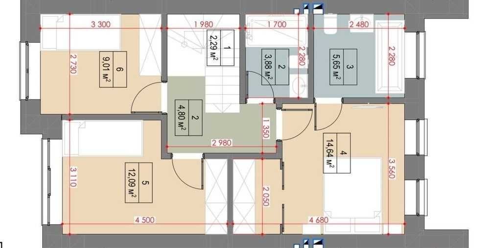 2 поверх — майстер-спальня з гардеробною та санвузлом, дві дитячі кімнати, санвузол.