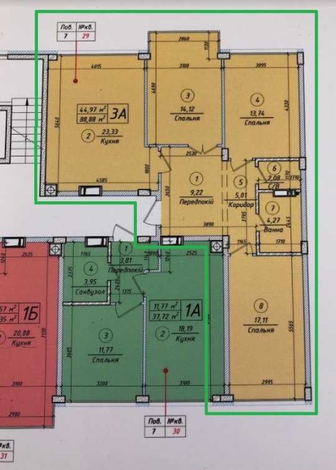 Квартира знаходиться на 7-му поверсі у 8-поверховому будинку.