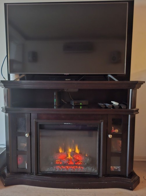 - Простора вітальня з каміном