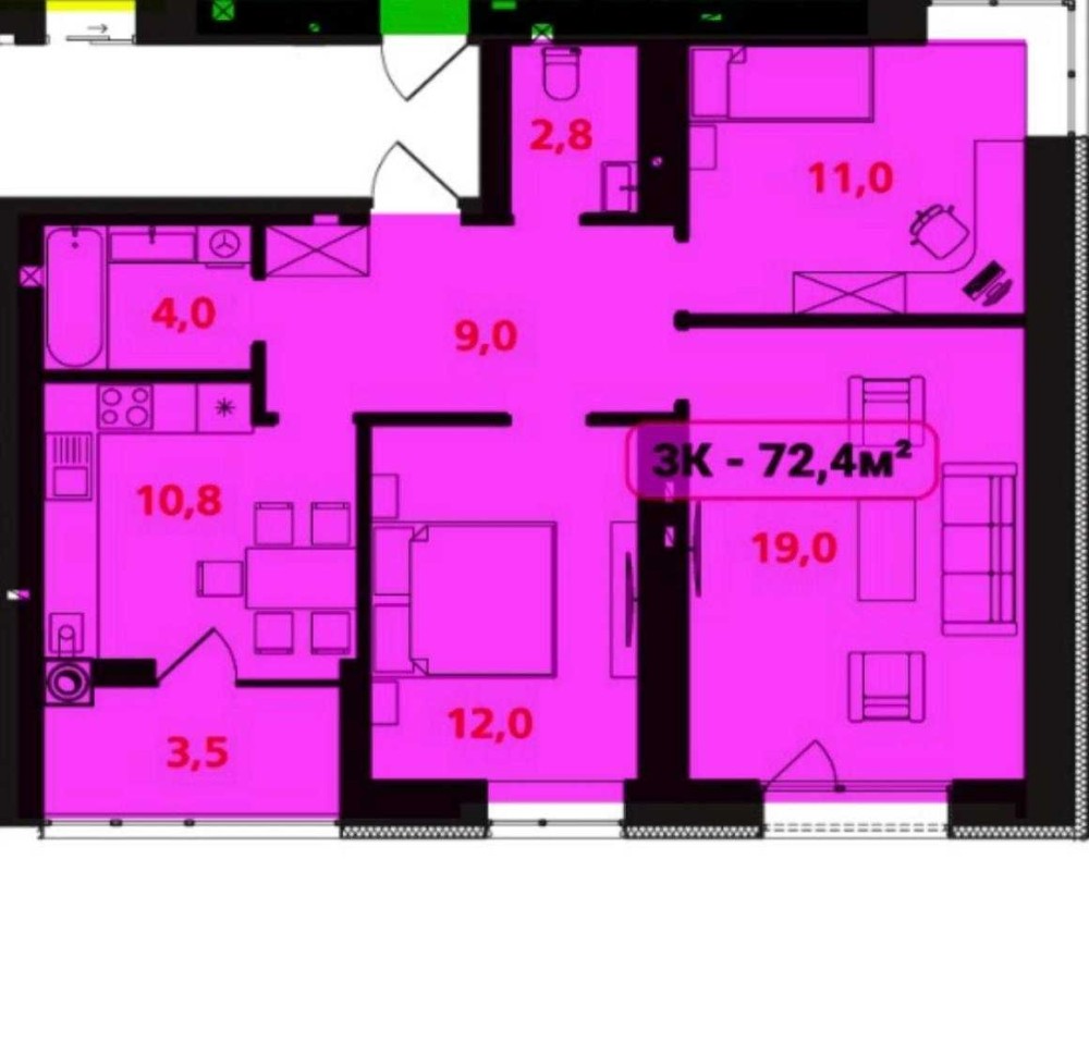 • Трикімнатна