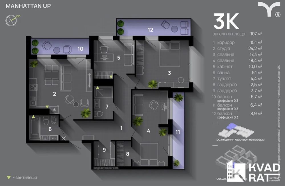 • Загальна площа 108 м2