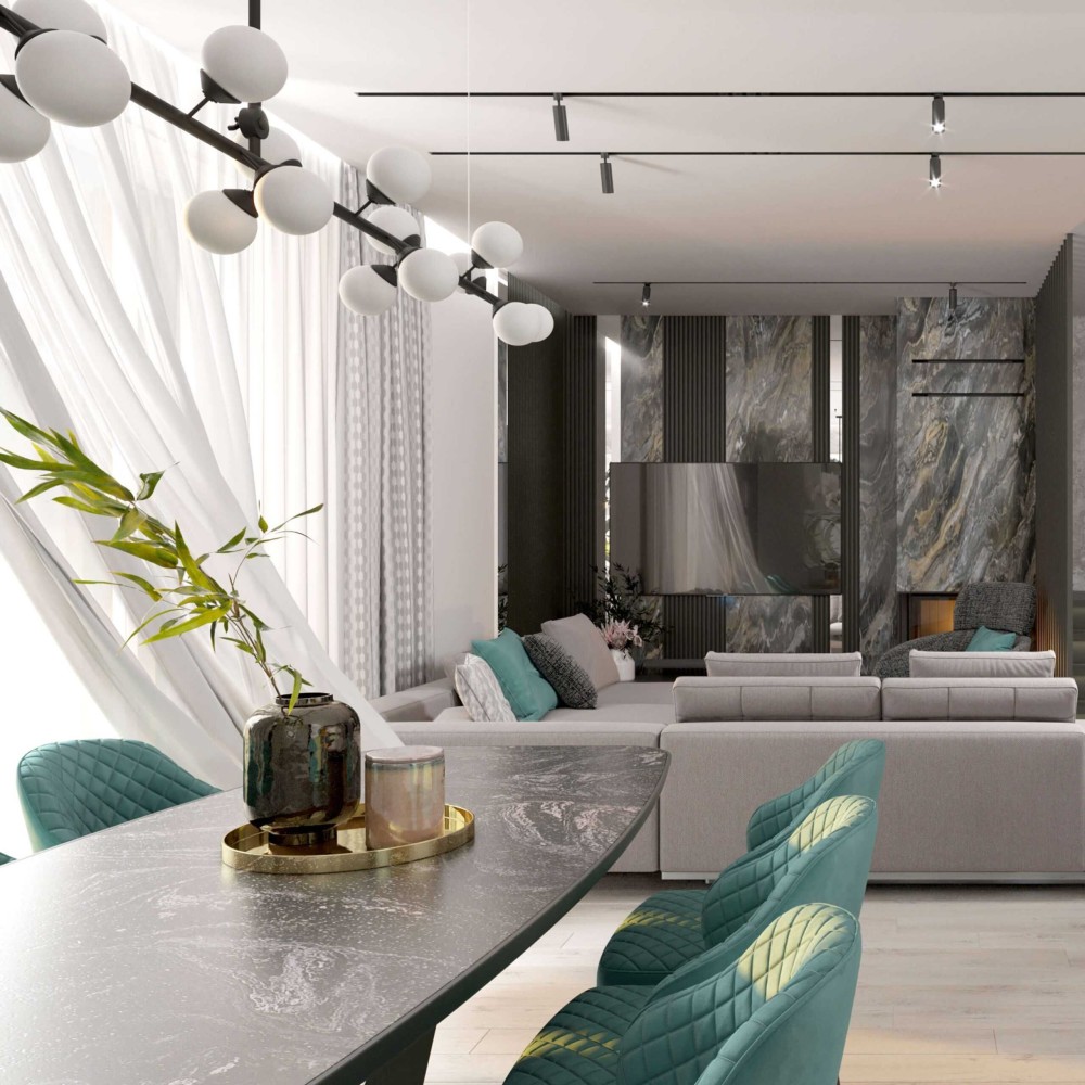 - Кухня-вітальня з панорамними вікнами й виходом на балкон