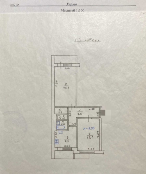 • Площа кухні 7.5 м2