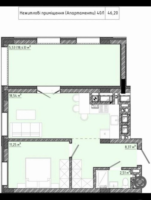 • Загальна площа 46 м2